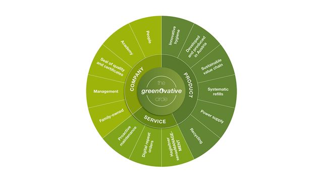 Greenovative is sustainability with a system: for people, products and our environment. At Hagleitner, responsibility begins with the selection of ingredients and extends to efficient logistics – all regionally developed and produced in Zell am See. Intelligent dispensers save resources, reduce waste and deliver data for anticipatory action. Greenovative is not a brand, but a commitment: to innovation, to mindfulness and to a future fit for grandchildren. Discover solutions here in which every detail is designed for conscientiousness – for more quality of life and less of an ecological footprint.